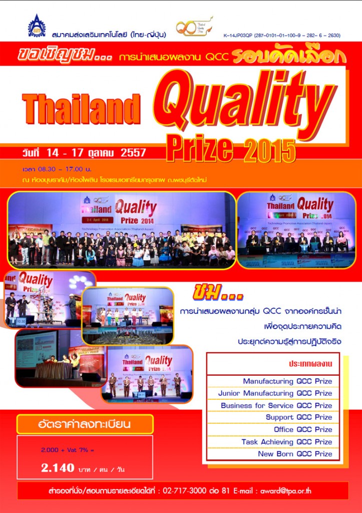 ขอเชิญชม.. การนำเสนอผลงาน QCC รอบคัดเลือก ในงาน Thailand Quality Prize 2015 วันที่ 14-17 ตุลาคม 2557