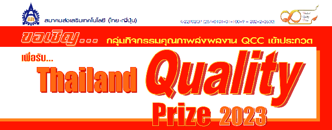 › ไม่มีหมวดหมู่ › รับสมัครผลงานกลุ่มคุณภาพ QCC เข้าประกวด Thailand Quality Prize 2023