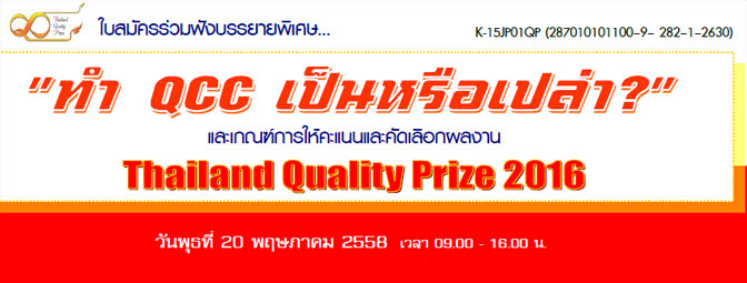 ขอเชิญร่วมฟัง บรรยายเกณฑ์การให้คะแนนและคัดเลือกผลงาน Thailand Quality Prize 2016 ดาวน์โหลด